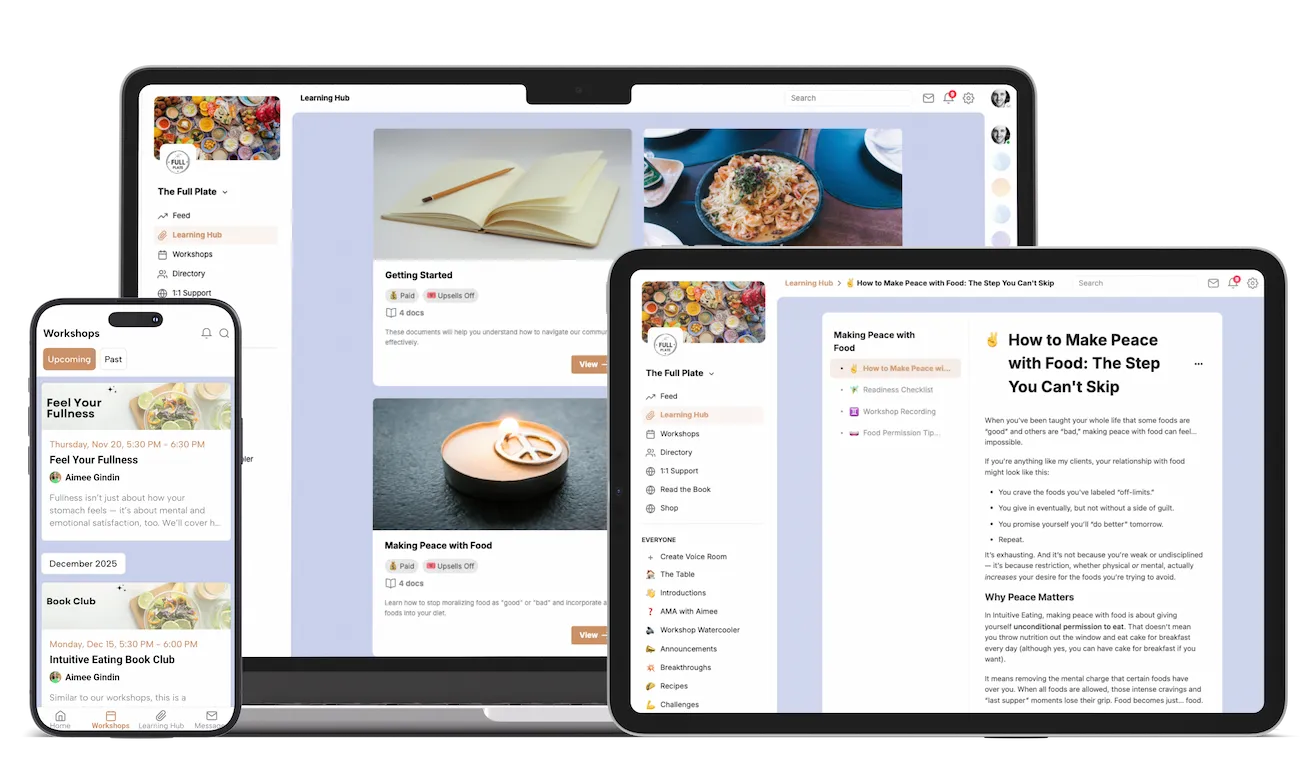 The Full Plate Community is a safe space to reconnect with your body, explore intuitive eating, and build connections with others who are ready to stop dieting for good.